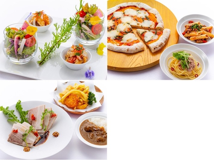 苺のタルトや苺のモンブラン、苺のパフェなど苺が主役のスイーツを31種、ピザやローストポーク、シーフードのエスカベッシュなどのライトミールを10種ご用意いたしました。